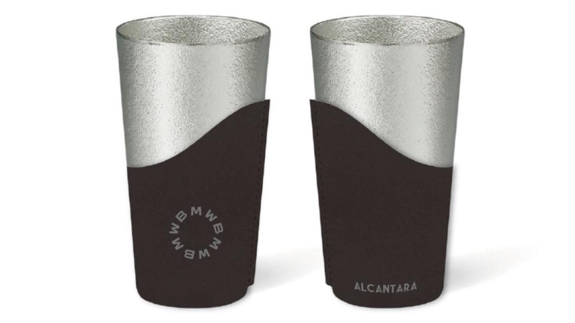 BMWのインテリアにも採用されている上質な手触りのマテリアル「ALCANTARA®」製スリーブを纏ったオリジナル・ビアカップをプレゼントいたします。